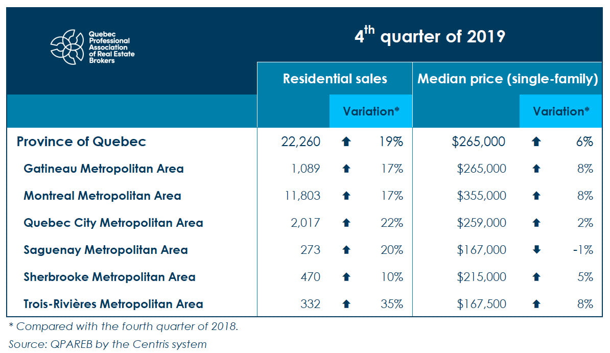 - The year 2019 ended on a high note as 22,260 transactions were concluded in the province of Quebec in the fourth quarter of the year. This is a 19 per cent increase compared to the fourth quarter of 2018.