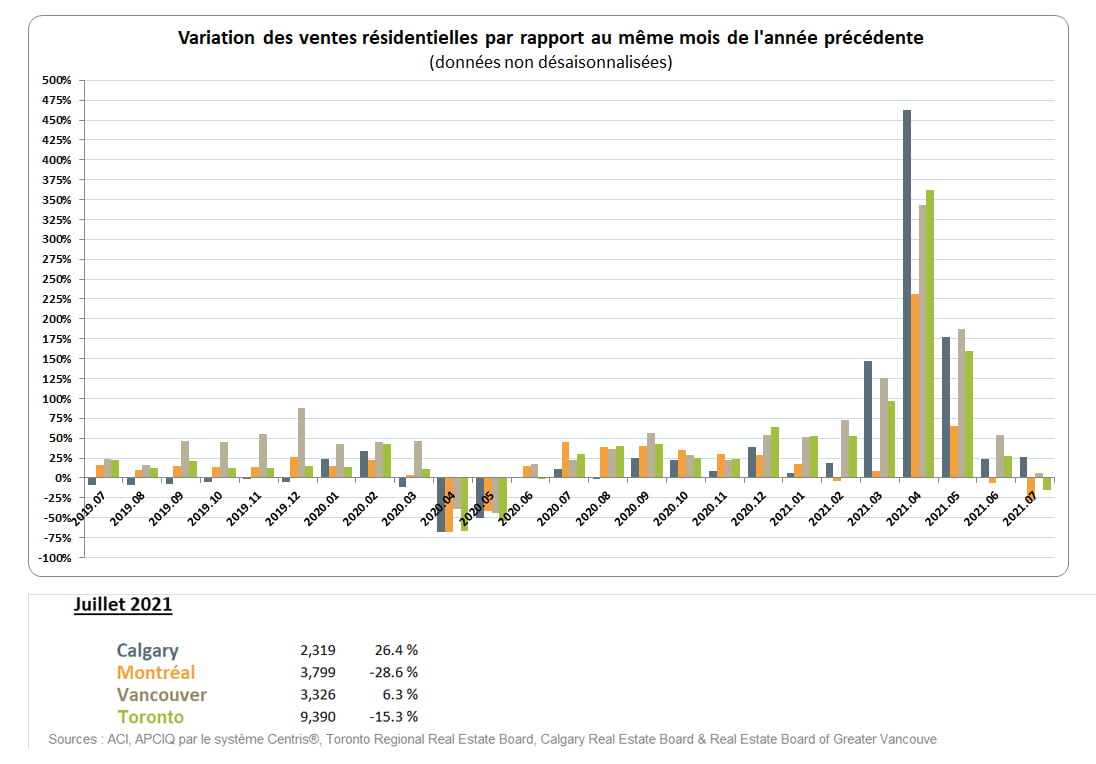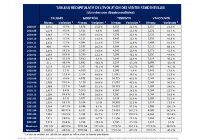 Le marché de Montréal connaît une hausse des ventes modeste comparée aux autres grands marchés canadiens. Le rebond des marchés de l’ouest canadien est surtout soutenu par la reprise de l’emploi dans le secteur des ressources naturelles, notamment le secteur énergétique.